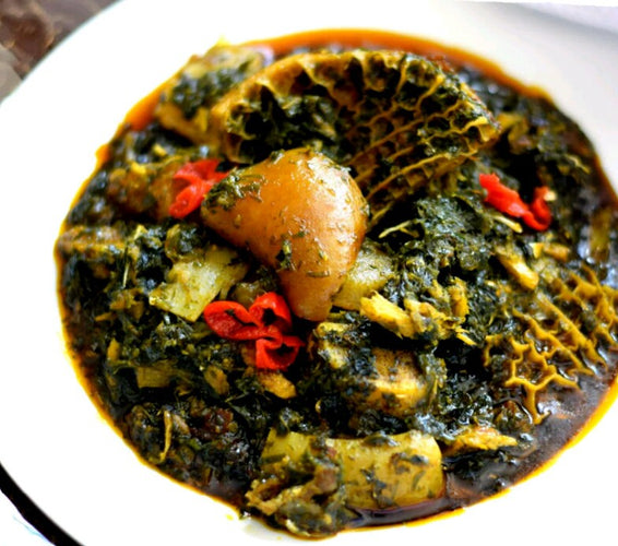 - 4 handfuls Okazi or Afang leaves, ground