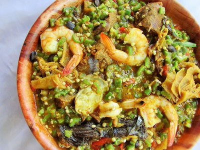 Notes: Shaki, Meat, Dry Fish, Iced Fish (Mackerel/Titus) and Stock Fish must not all be used at the same time in preparing the okra soup recipe. If you can, by all means use all as they will add to the flavour. But if not, an okra soup prepared with only iced fish ((Mackerel/Titus) can equally taste good. So don't go and break the bank because of a pot of soup!